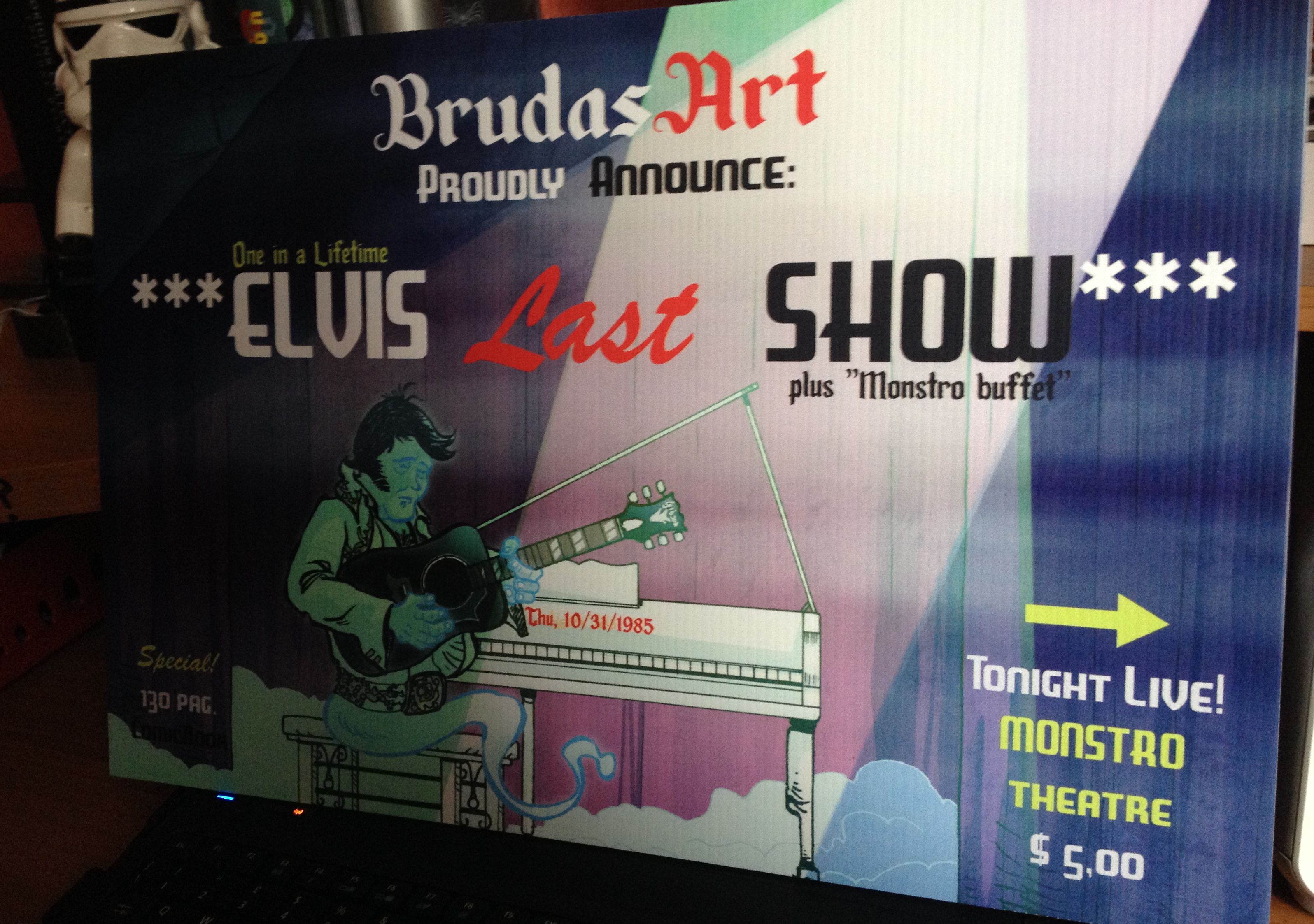 Questa è la giant-size edition della locandina dell’ipotetico ultimo show di Elvis Presley, con tanto di buffet “Monstro” e fumetto in regalo.